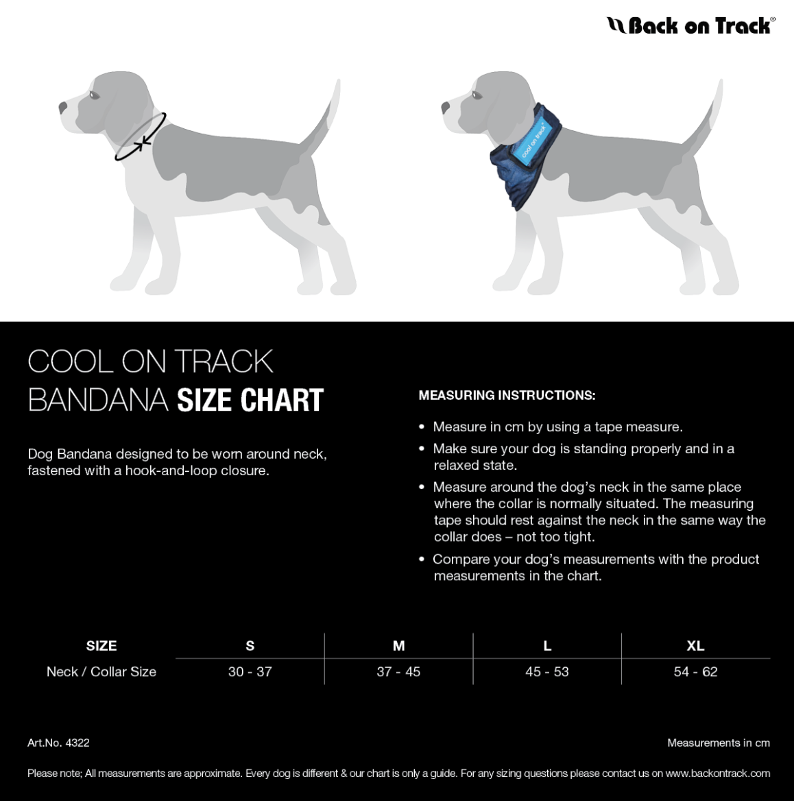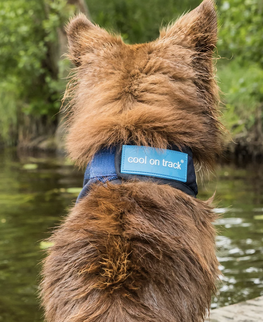 The technical Cool on Track™ material cools by means of water evaporation and provides a pleasant, refreshing effect. It contains no chemicals and does not require access to a freezer. A durable mesh outer layer stimulates the circulation of air. The bandana is easy to use in all situations. Soak it in water, squeeze out excess liquid and put the bandana around the dog’s neck. The material cools as long as it is damp and you can easily wet it again to maintain the effect throughout the day.