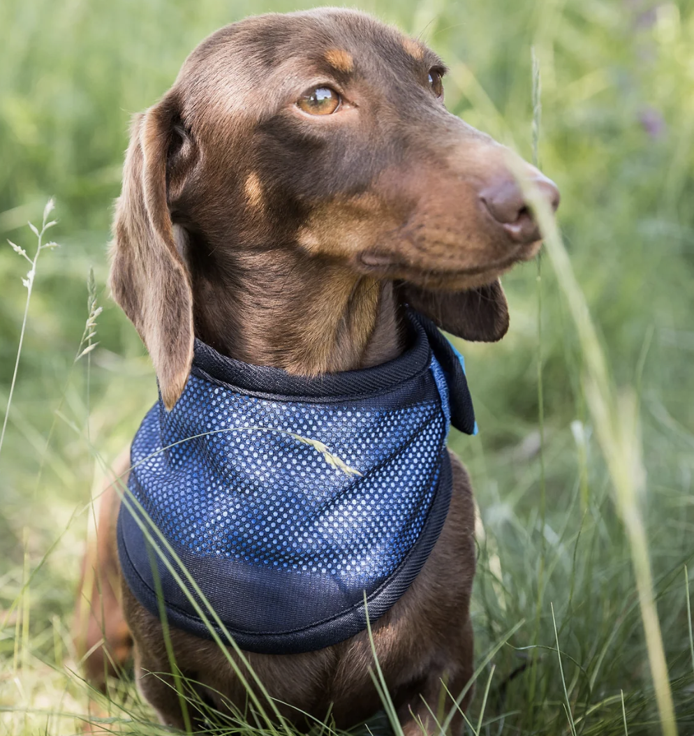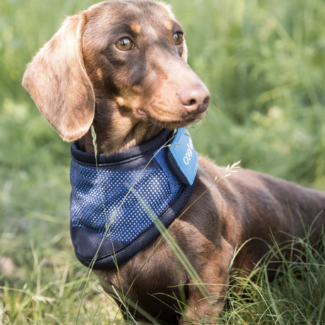 Help your dog to stay cool in the summer heat with a cooling bandana! Dogs are sensitive to heat since they do not have the ability to sweat as humans do. Therefore, it is important to make sure your dog does not get overheated during hot days or during exercise. The Cooling Bandana acts as a cooling wrap around the neck and throat region, providing dogs with a pleasant feeling of refreshment by cooling down superficial blood vessels.