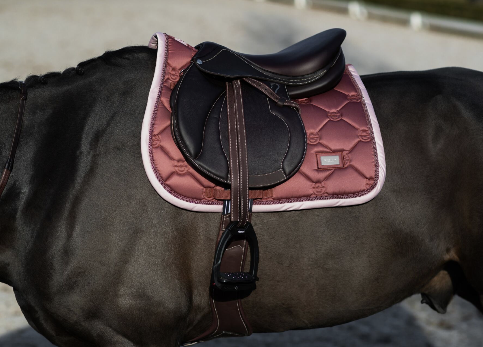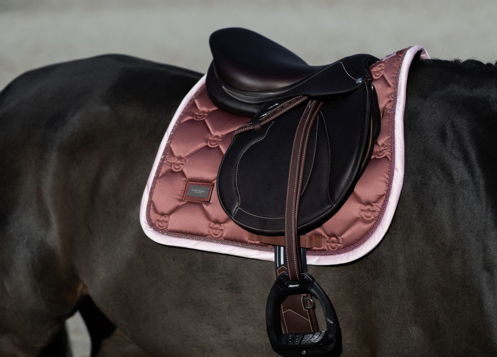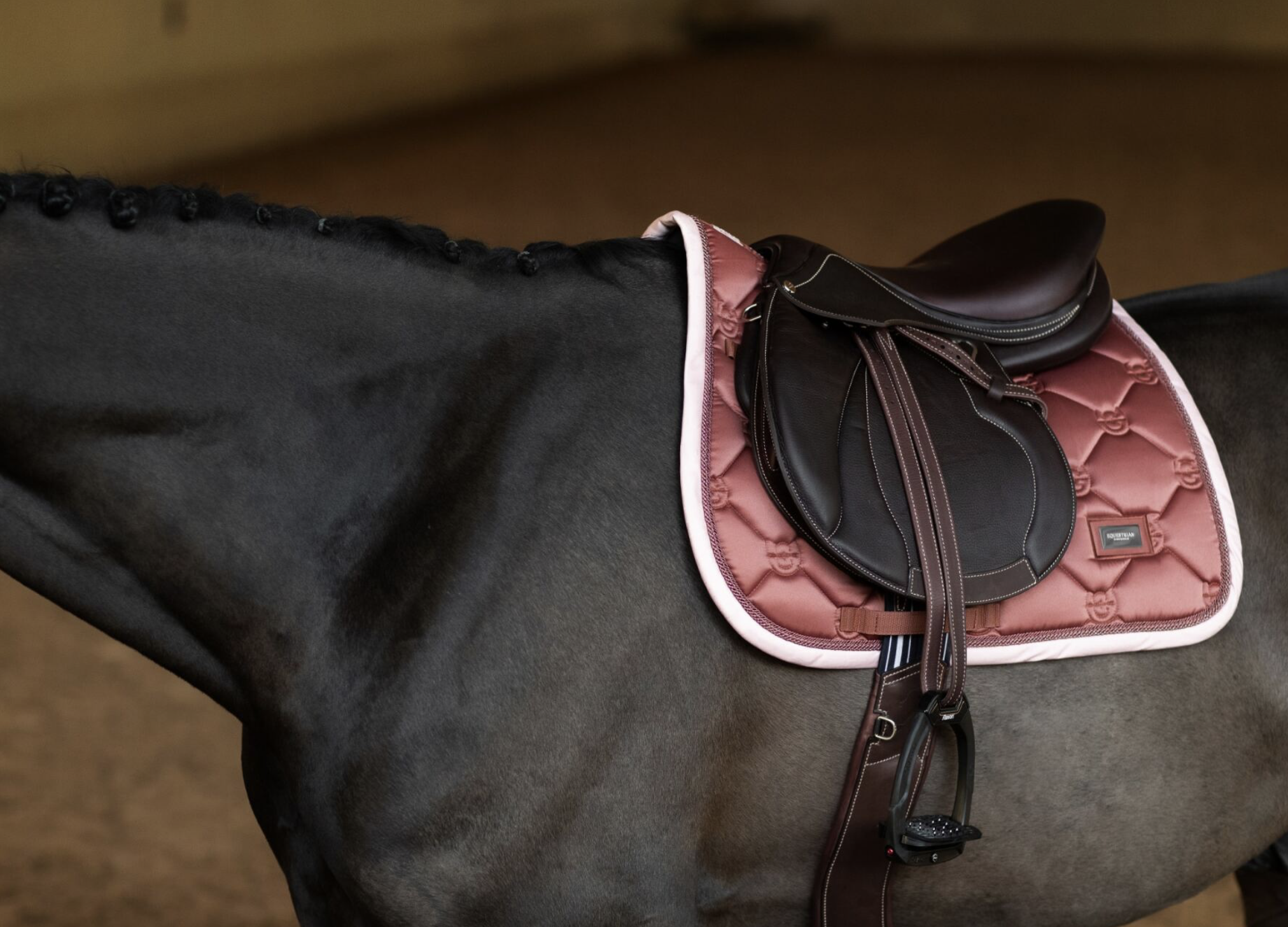 Elegant saddle pad in an amber red colour with silver details. Decorated with the Equestrian Stockholm badge in silver. The material is treated with High IQ cool comfort which gives the saddle pad quick dry and moisture wicking abilities. This helps your horse stay dry and fresh longer. Style with other pieces from our Amber Rose collection for a head-to-toe stylish look.