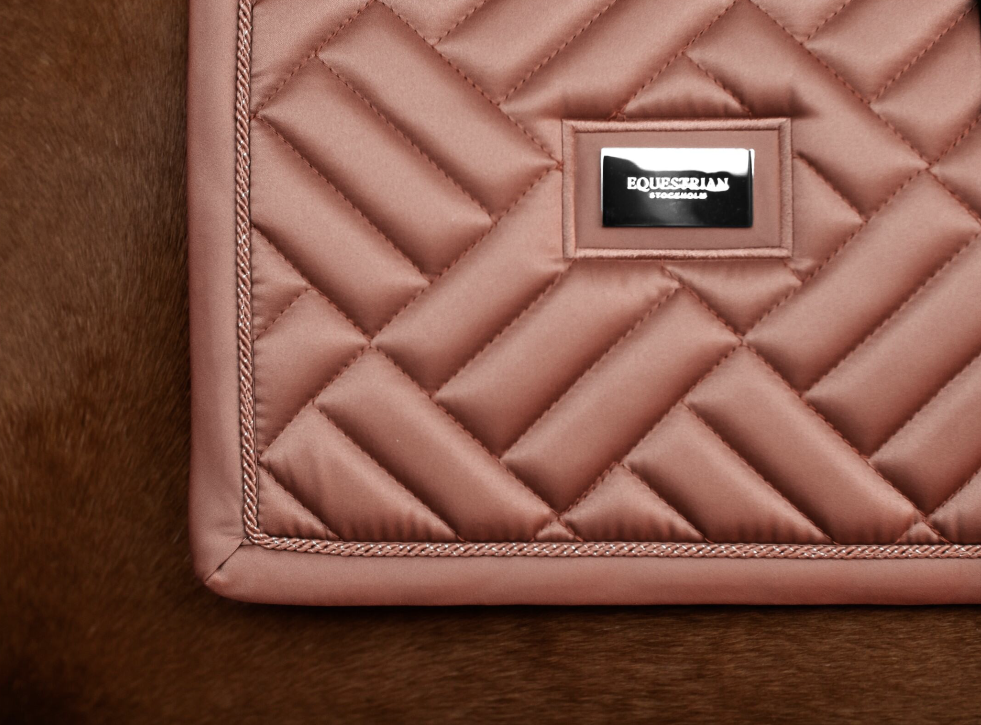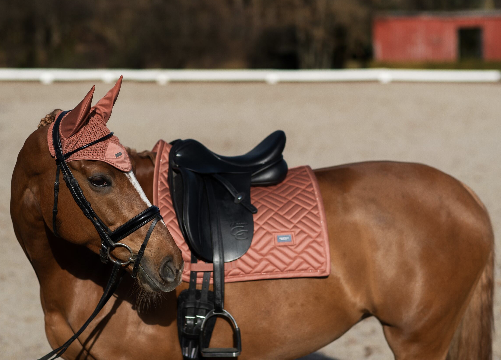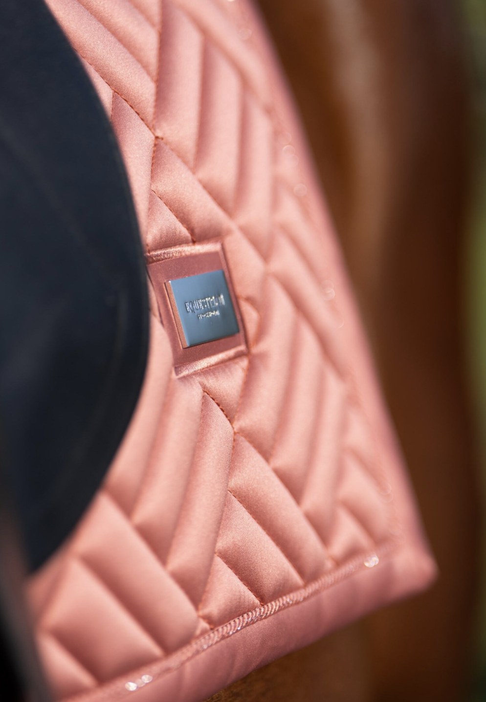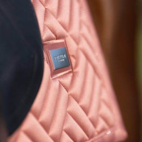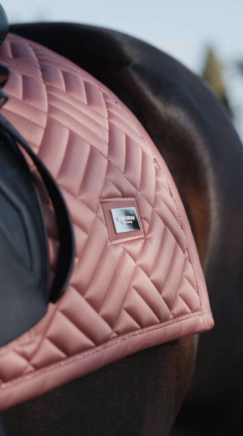 Elegant saddle pad with modern quilting in coral pink with silver details. Decorated with the Equestrian Stockholm badge in silver. The bamboo material is perfect all year round due to its thermal regulating effect – cooling in the summer and warming in the winter. It is also quick dry, moisture wicking, and anti-bacterial. Style with other pieces from the Coral collection for a head-to-toe stylish look.