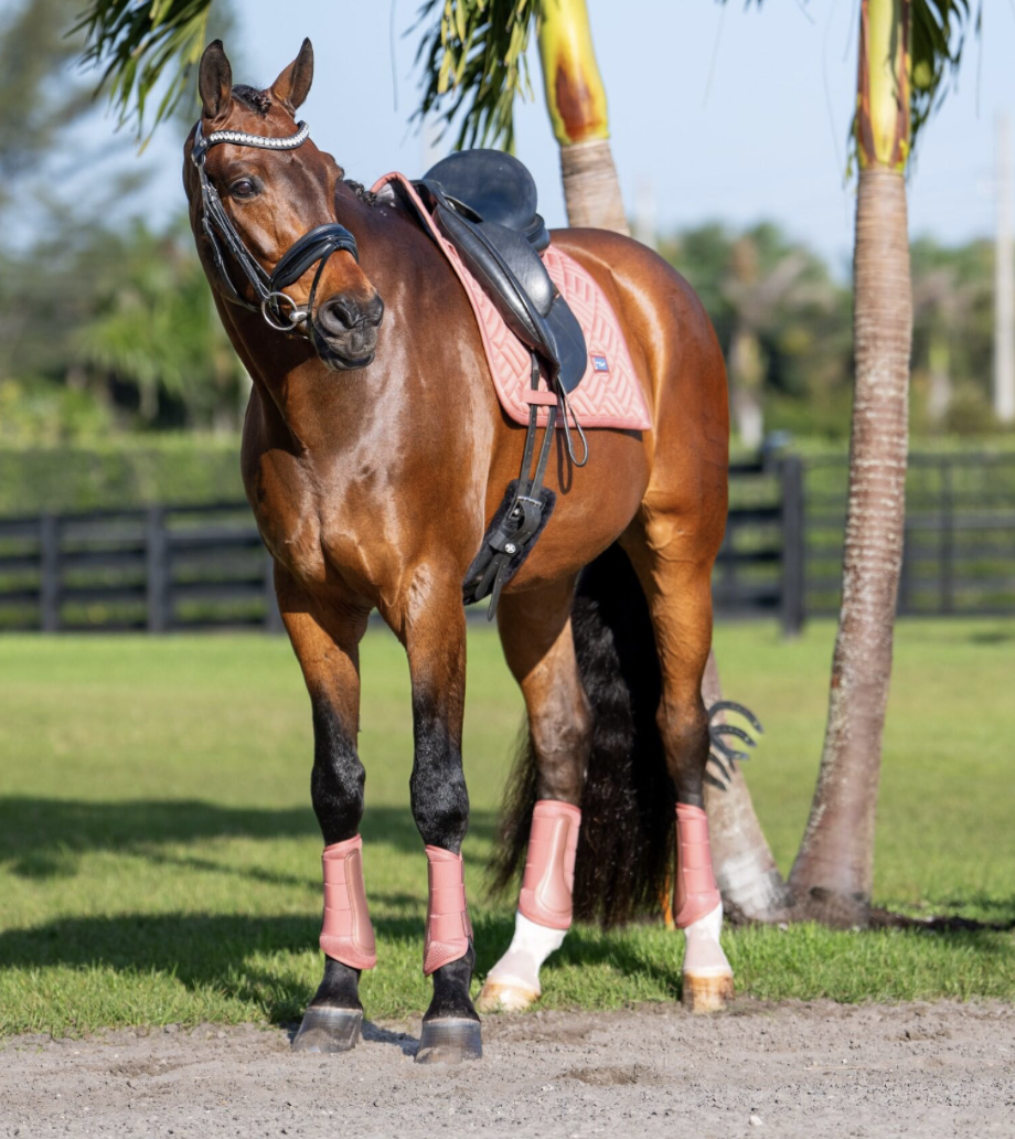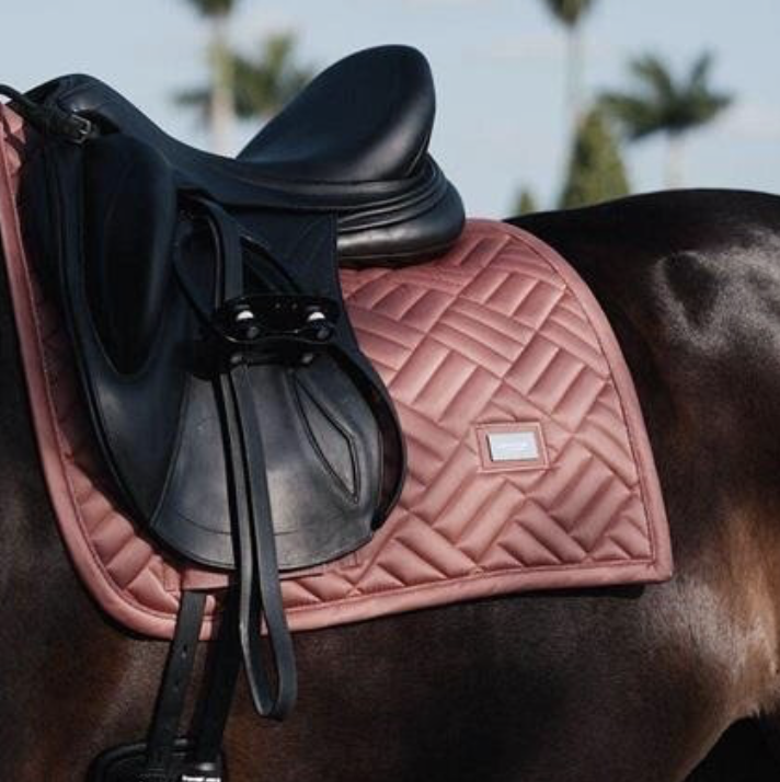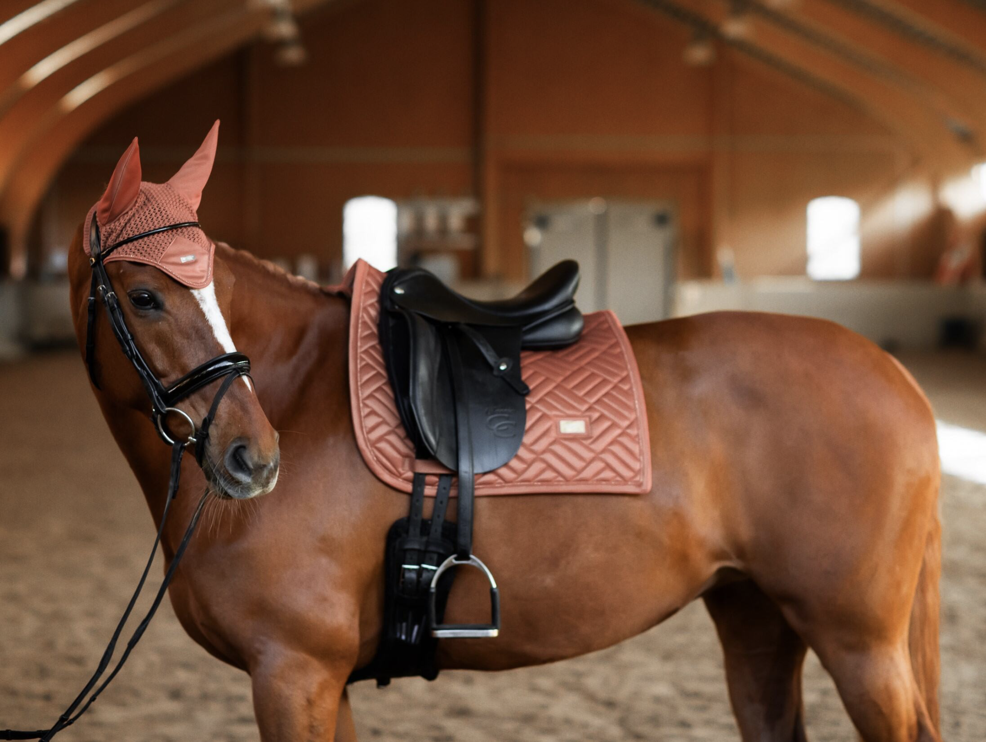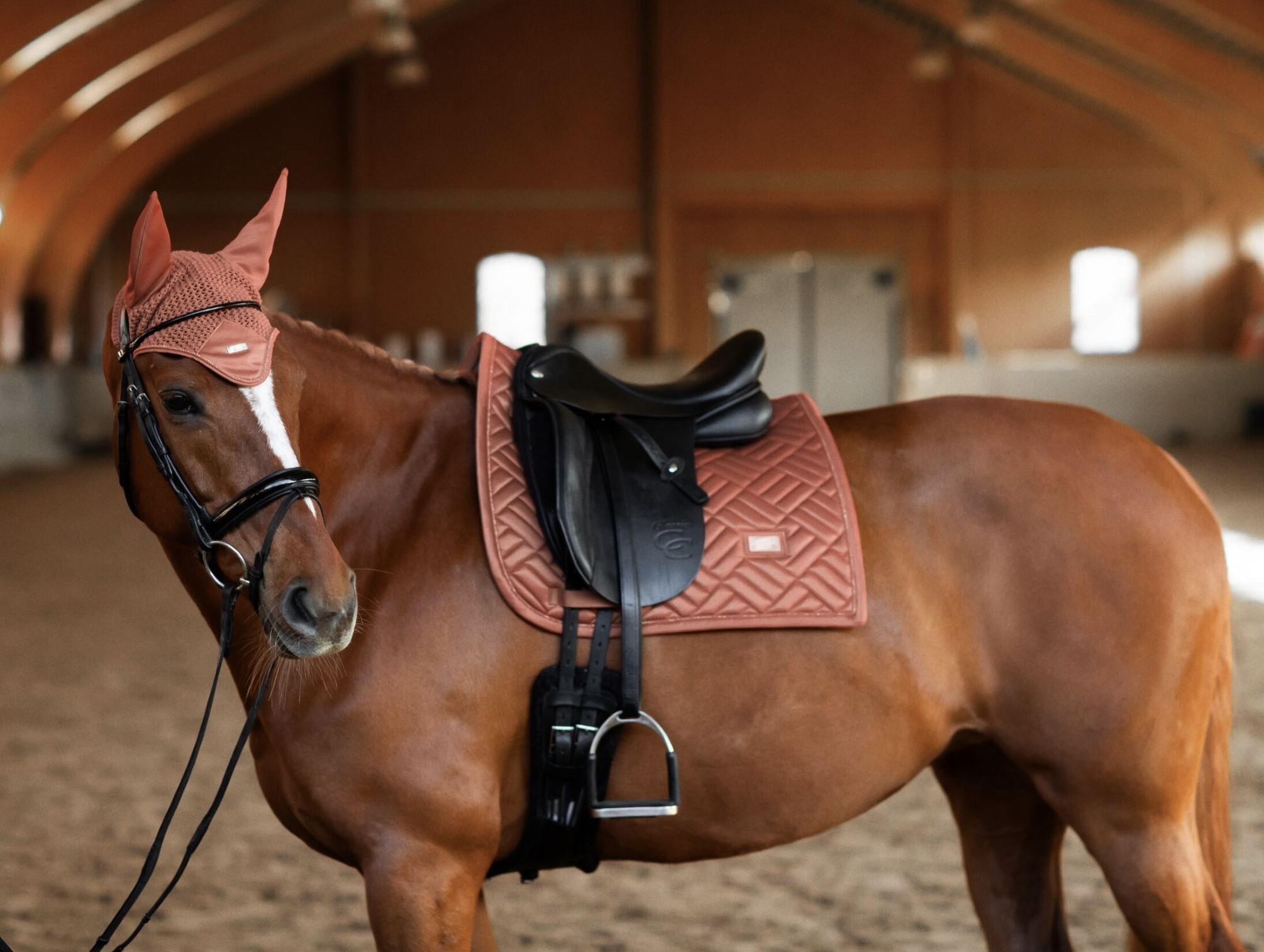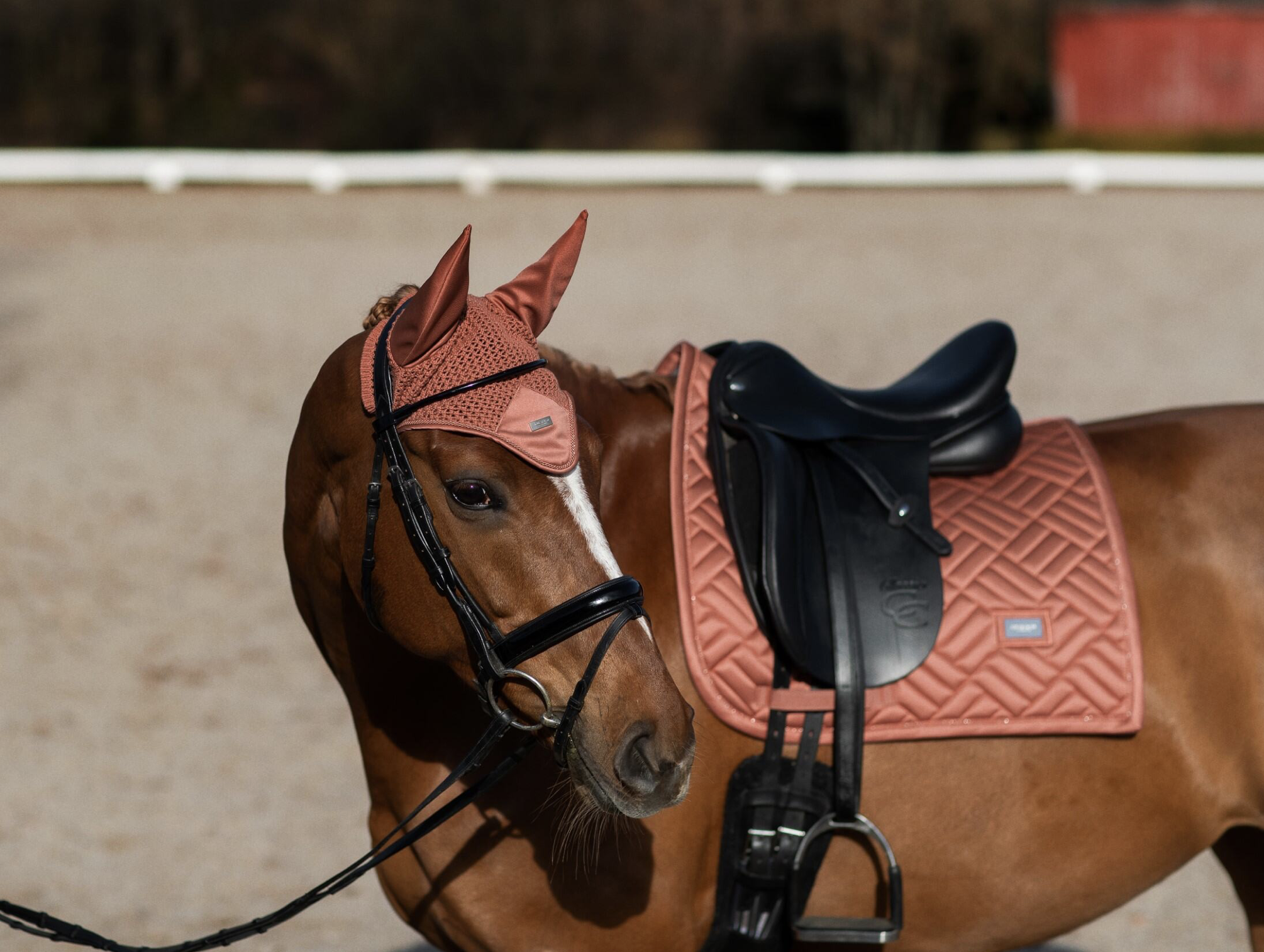 Elegant saddle pad with modern quilting in coral pink with silver details. Decorated with the Equestrian Stockholm badge in silver. The bamboo material is perfect all year round due to its thermal regulating effect – cooling in the summer and warming in the winter. It is also quick dry, moisture wicking, and anti-bacterial. Style with other pieces from the Coral collection for a head-to-toe stylish look.