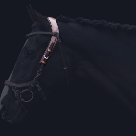 The special shape of the FaySport headpiece relieves the nuchal ligament and nerve endings at the top of the neck. The pressure is distributed over two gel cushions on the sides of the neck. In addition, the crown piece follows the shape of the ear base, allowing optimal freedom of movement for the ears. The jaw joint is also avoided, which makes it easier for the horse to relax its jaw. The PressTEQ attachment of the browband provides a smooth bottom surface and prevents pressure points.