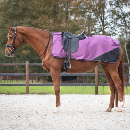 The rug is fastened with a hook-and-loop fastener on the withers.
