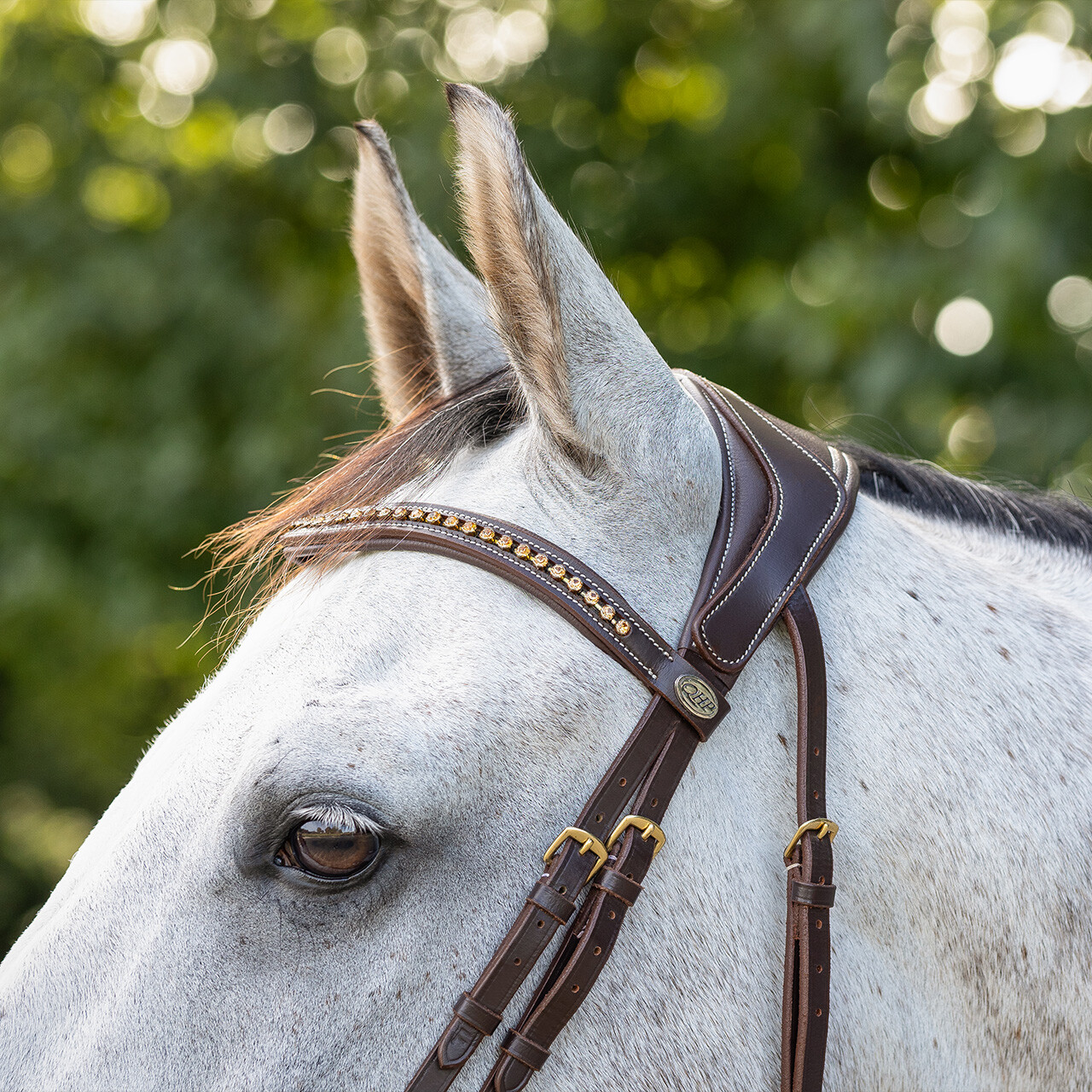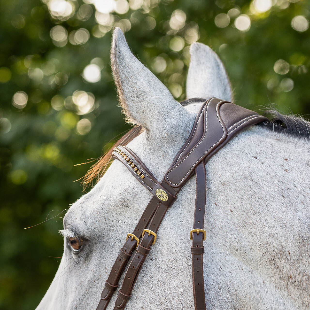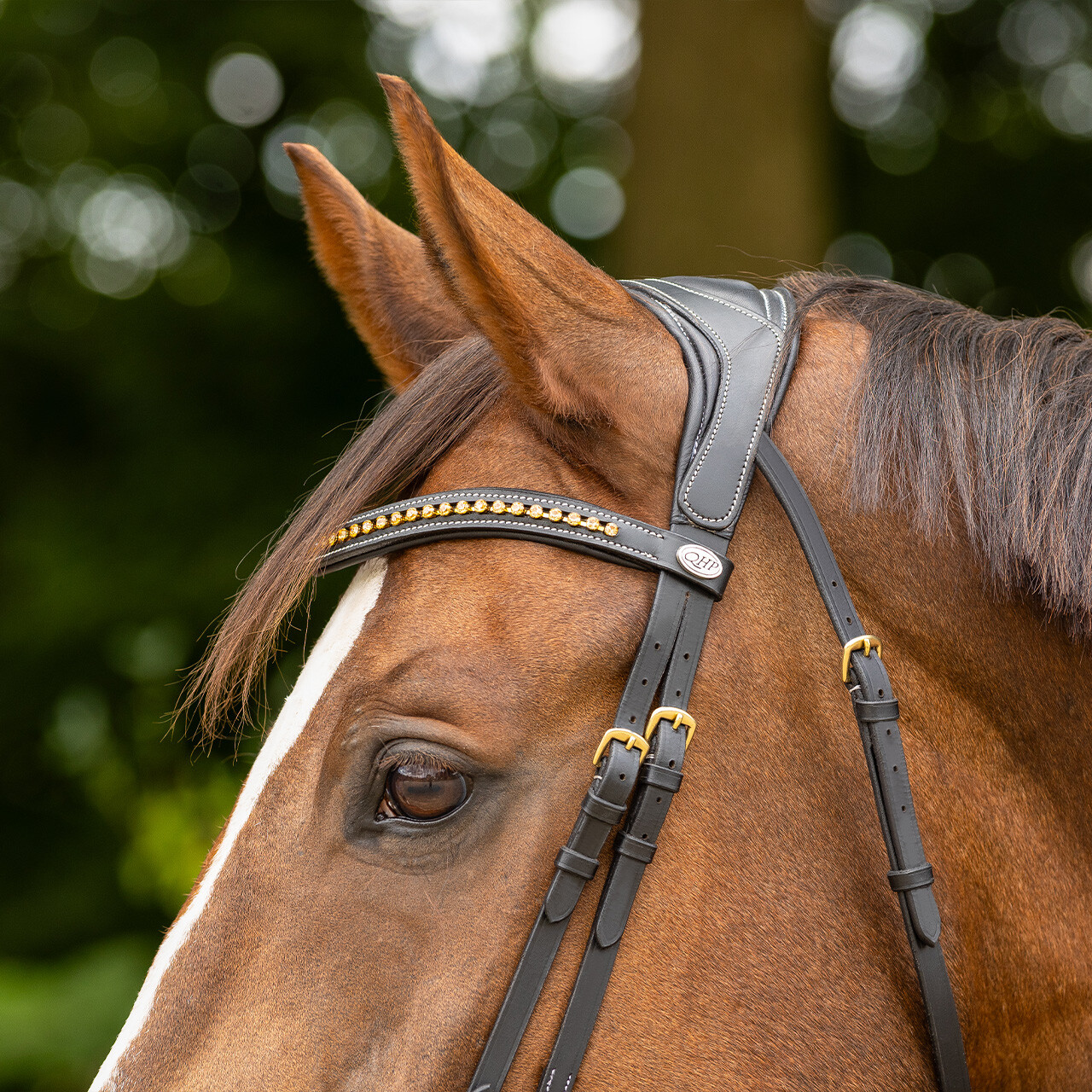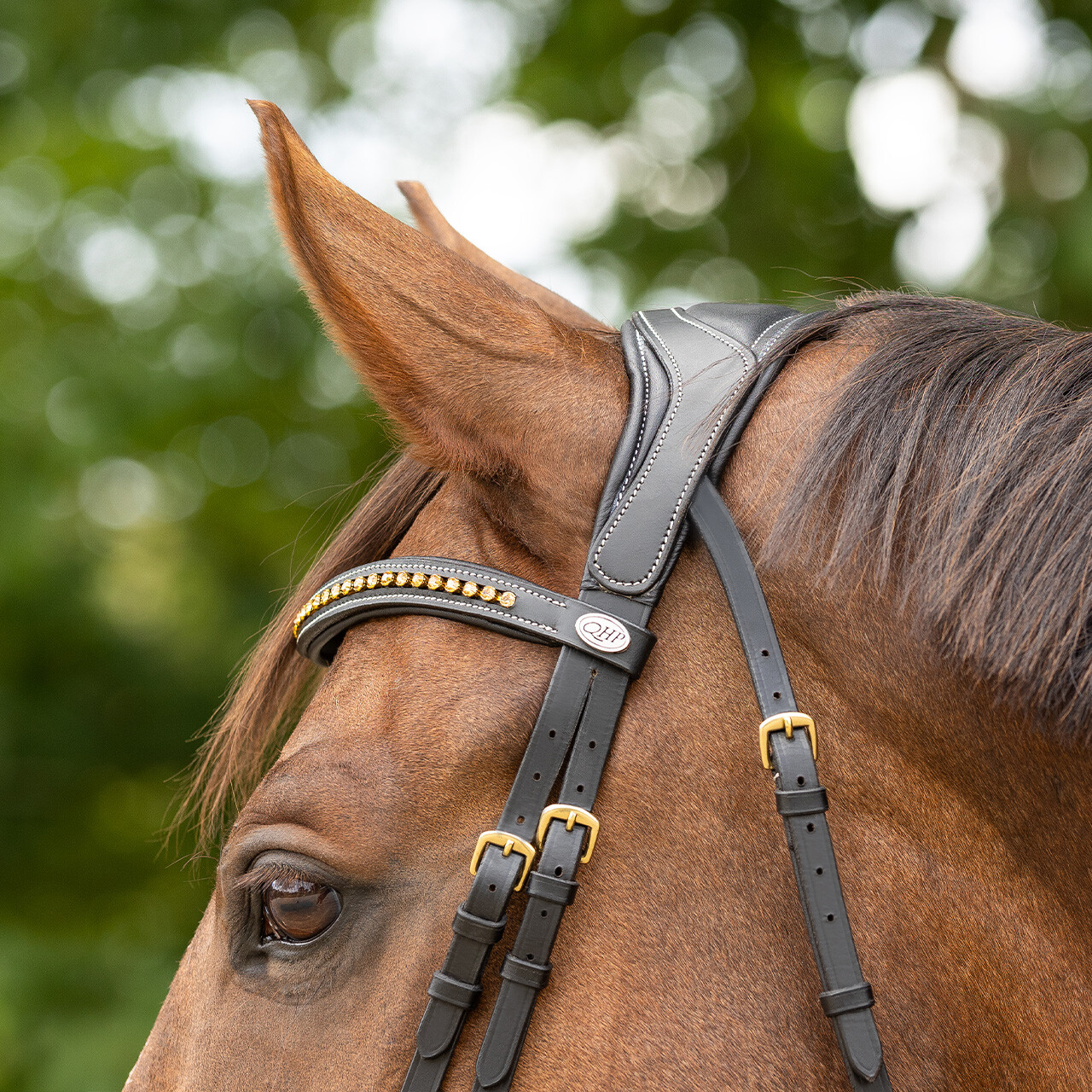 Anatomically shaped bridle which avoids the nerves and sensitive points of the horse’s head as much as possible.