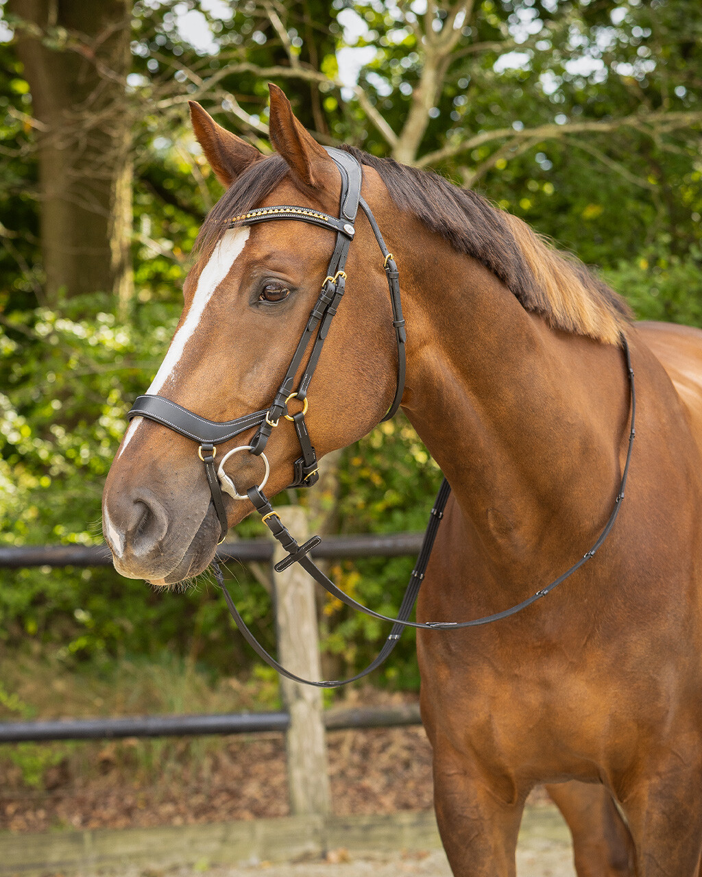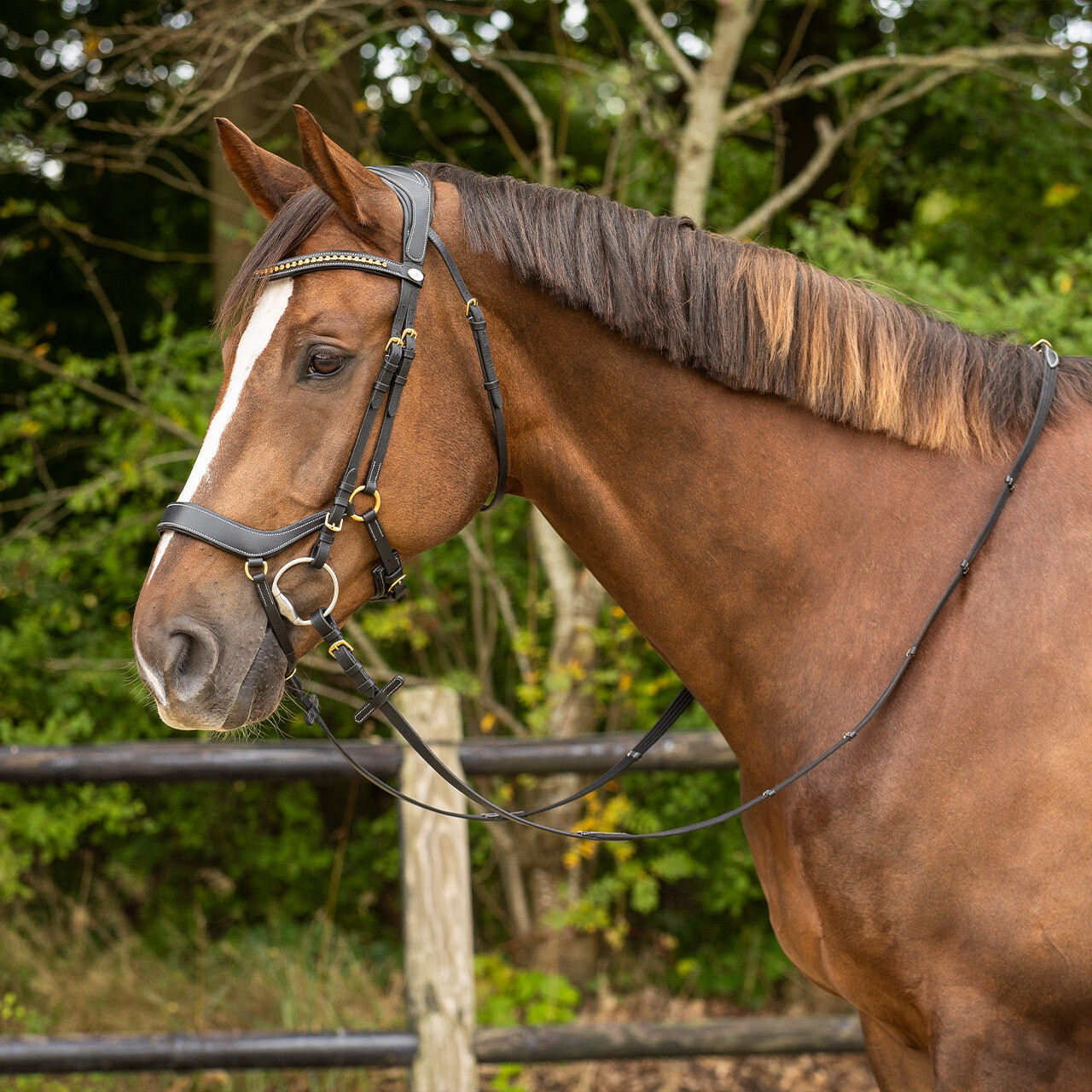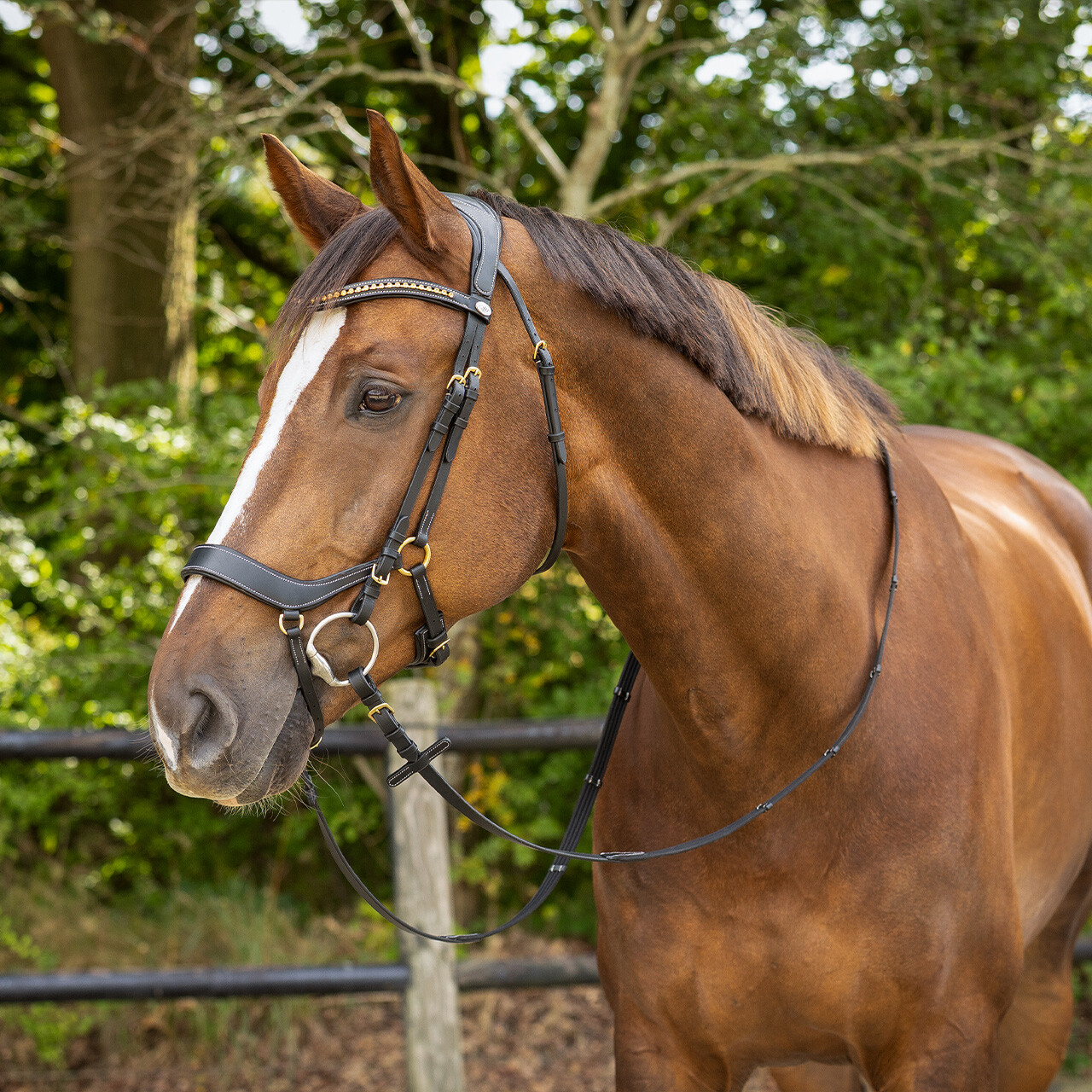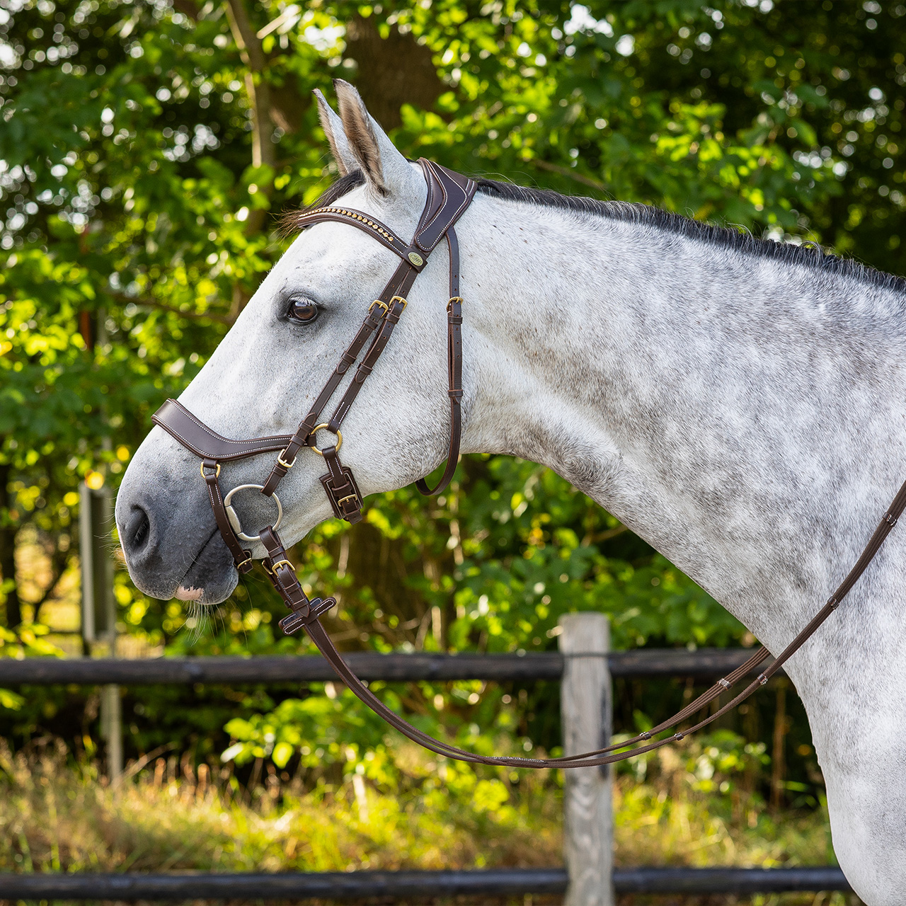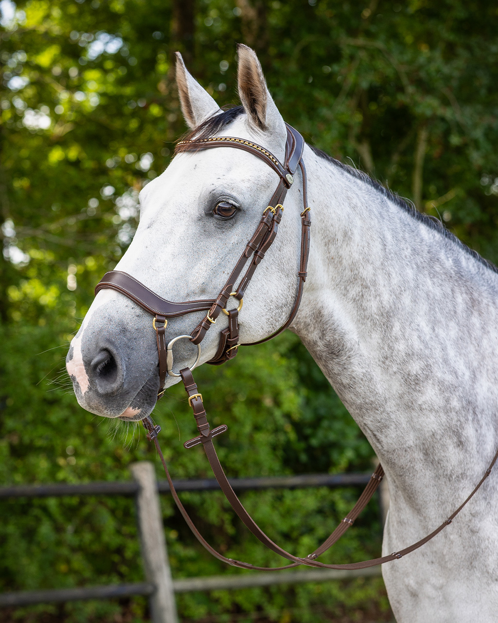 Anatomically shaped bridle which avoids the nerves and sensitive points of the horse’s head as much as possible.