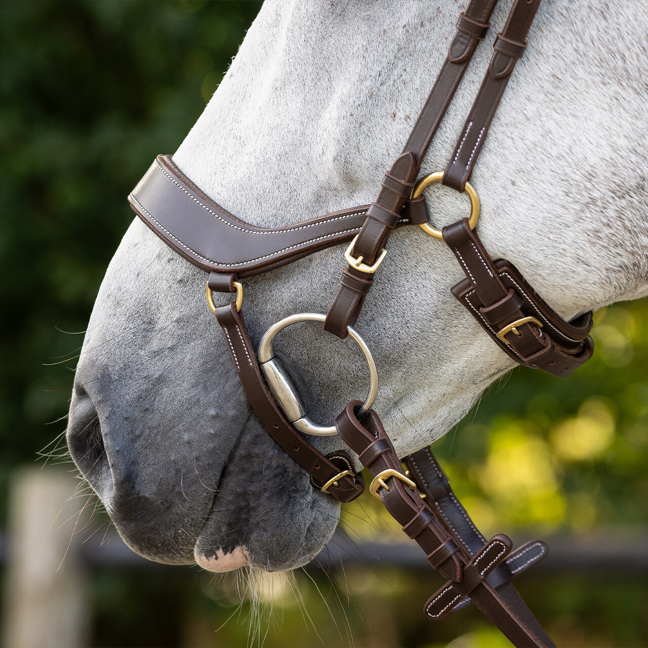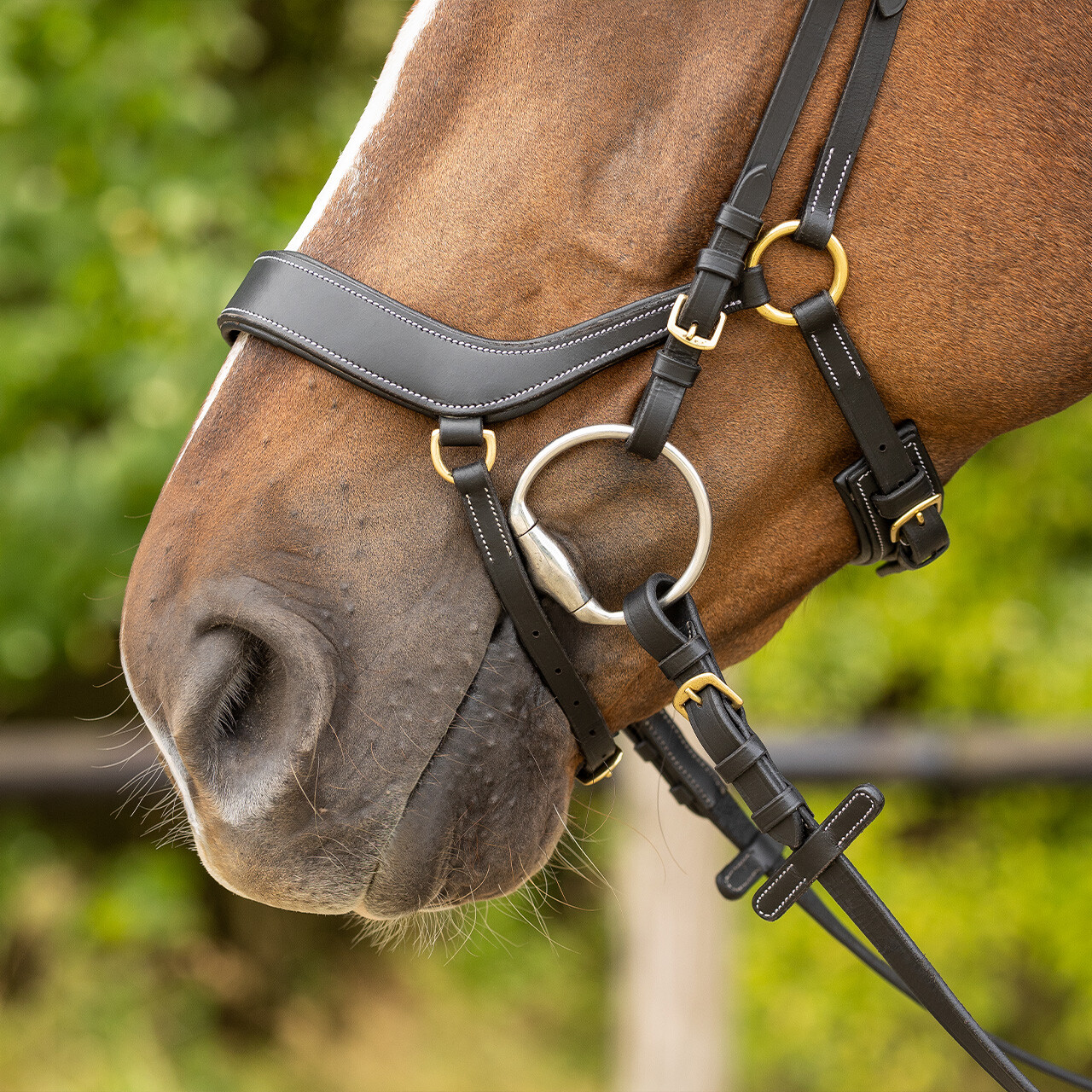 The special curved shape of the noseband ensures that it lies higher up on the nose and avoids the sensitive lower part.