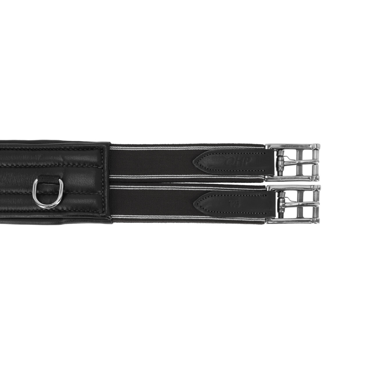 For the dressage girth, both buckles are attached to the same piece of elastic. This prevents one girth strap from applying more pressure than the other.