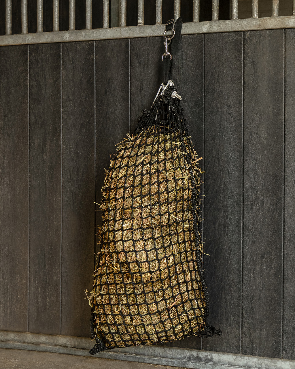 Hay net Slow with a 3 cm mesh, ideal for getting horses to eat slower to prevent overeating. This slow feeder helps horses learn a calm eating routine. Most horses get used to this quickly, but some may become stressed if they have trouble eating this way. For these horses, a mesh of 4,5 cm or larger is a better choice. Suitable for horses that need to lose weight or eat too fast.