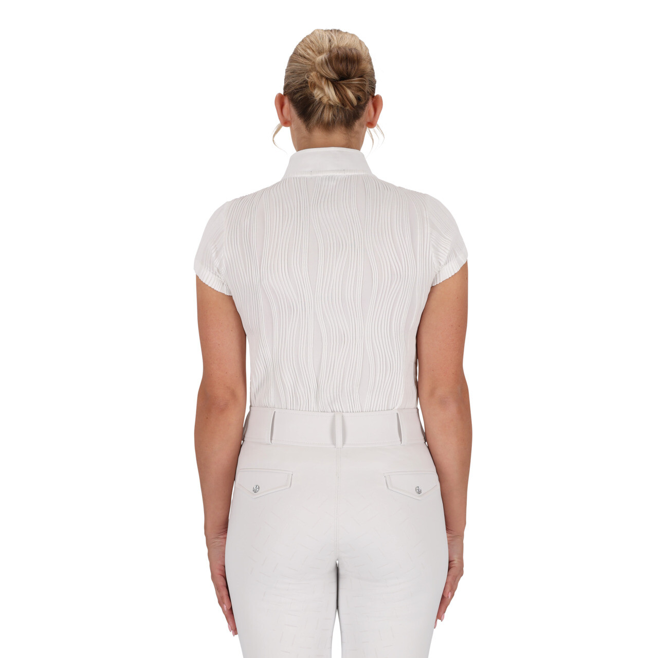 The Kynlee competition shirt is quick-drying and moisture-wicking. Thanks to the stretchy fabric, it feels comfortable to wear and has a beautiful ribbed texture.
