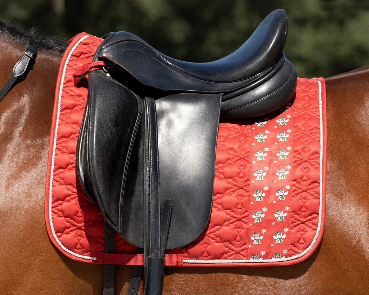 Christmas is coming! With saddle pad Merry Christmas you are ready for the fun December month. The red saddle pad features Christmas unicorn print and is decorated with a Christmas star stitching. Combine the pad with the other Christmas items!