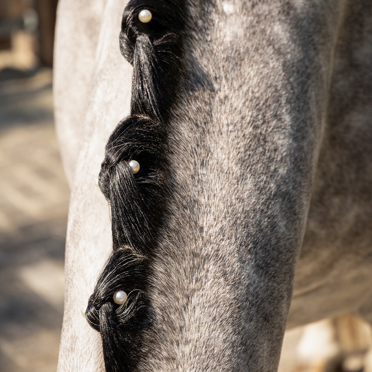 Mane jewellery for your horse’s braids. You easily insert the jewellery through the braid and fasten it. The jewellery gives a chic look.