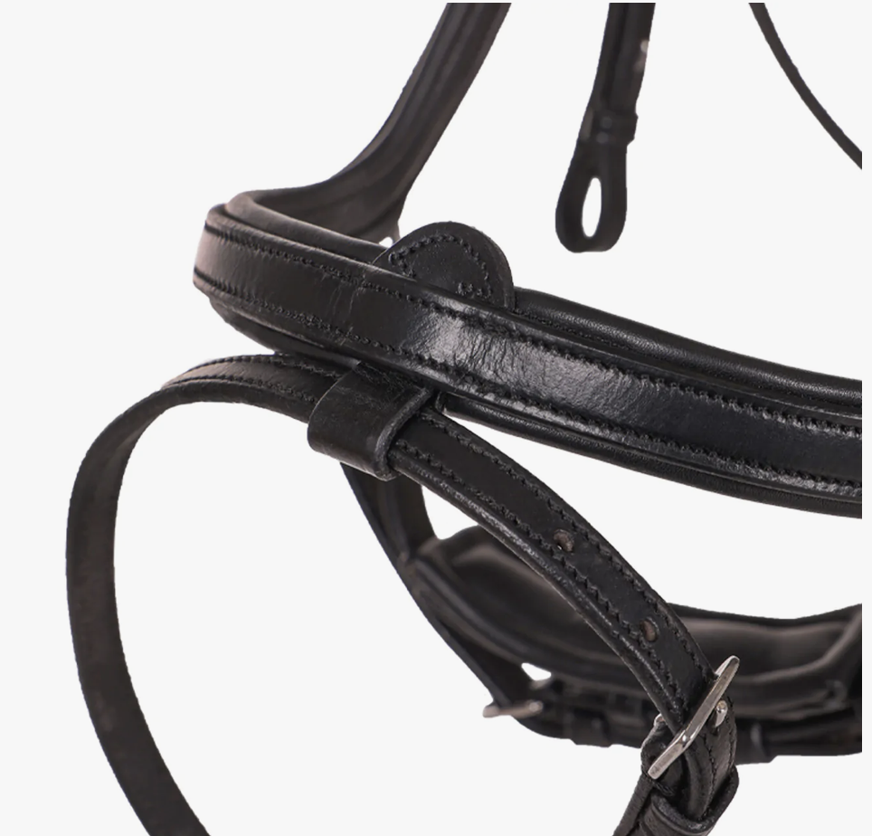 The brow band is softly padded and anatomically shaped. The noseband is positioned freely around the horse’s head’s main nerve, preventing any pressure.