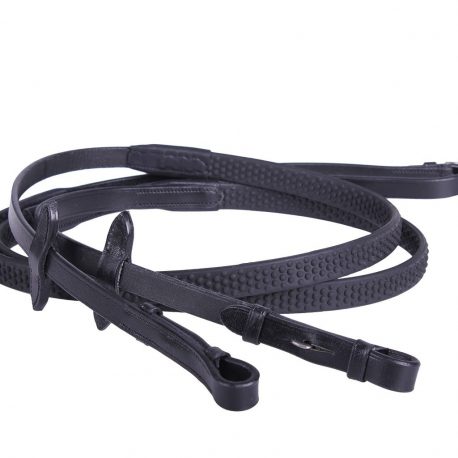 leather reins with a rubber grip ideal for everyday use. These reins feature hook stud billets and stainless steel fittings.