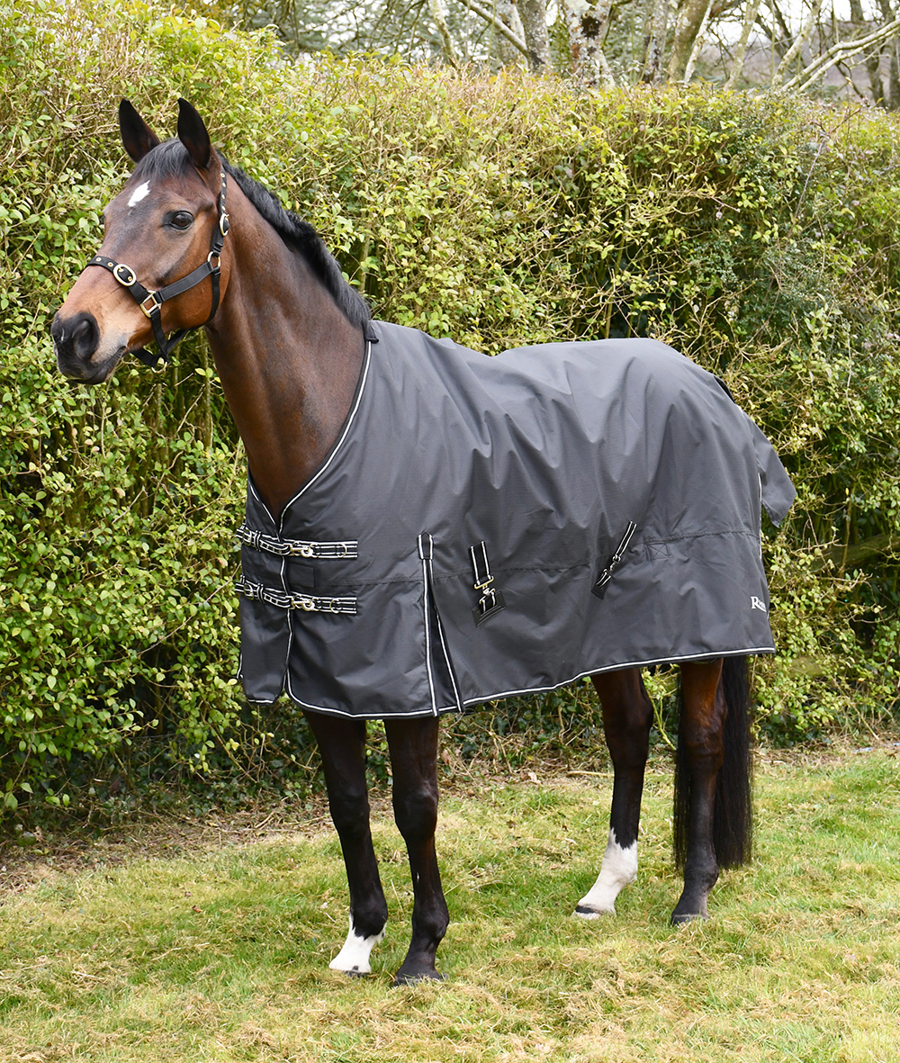 Fuss free double chest straps and cross over surcingles. The high cut shoulder gusset will allow a wider range of movement whilst the large tailguard will protect against any rain showers.