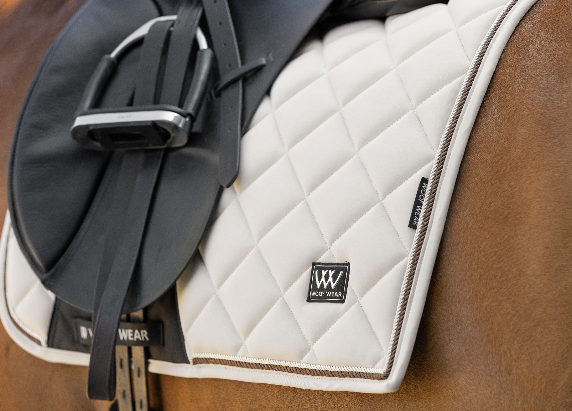 Woof Wear’s Vision Aura Dressage Pad blends performance, comfort, and contemporary elegance. Crafted from soft, stretchy Lycra, it delivers exceptional breathability and moisture-wicking to keep your horse cool and comfortable through every ride. The elegant quilted pattern is enhanced by twin rope bindings, adding a refined, contemporary touch. Designed with a high-wither cut and ergonomic contouring, the pad offers a secure, close-contact fit under modern dressage saddles—providing freedom of movement and lasting comfort for your horse.