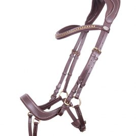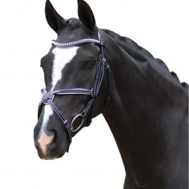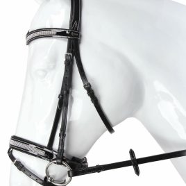 Finally, the bridle does not press against the teeth and cheeks of the horse, which allows the horse to relax its mouth. The bridle features a patent leather noseband and deluxe browband with rhinestones. In short, a bridle of very good quality which, through careful research, contributes to performing at a high level.