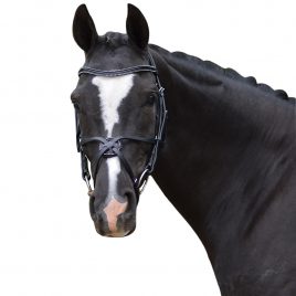 The anatomically shaped, padded headpiece has been designed to distribute pressure away from the sensitive area behind the ears with no additional overhead straps. A modern twist on a classic bridle that is available with or without a flash and has uniquely curved cheek pieces to eliminate pressure.