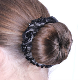 Hair bow with a luxurious look. Features a large mesh hairnet.