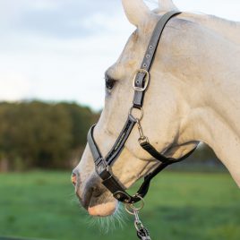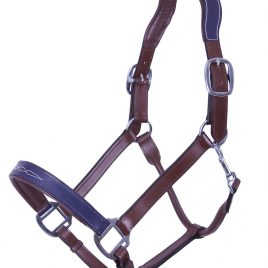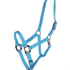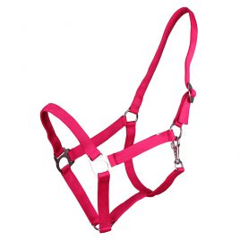 The rope with snap closure has silver accents. The head collar is adjustable on the noseband and crown piece.
