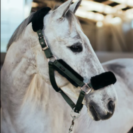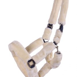 blue head collar with blue sheepskin which is removable and matching blue lead rope available in large