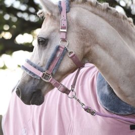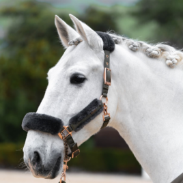 Head collar Dolci has a soft faux fur padding and is finished with a silver cord on the noseband, cheek pieces and crown piece.