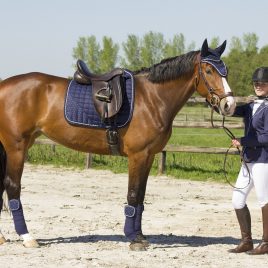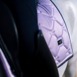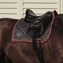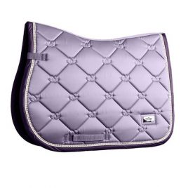 Saddle Pad Made of soft and extremely durable velvet. With black, perforated cooltech fabric lining to ensure circulation, whilst preventing chafing. Finished with sparkly pipings and gold horss logo.
