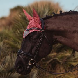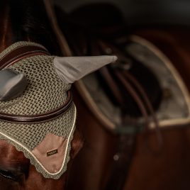 Luxurious crocheted ear bonnet in a stylish deep teal blue colour. Decorated with a tone-on-tone satin patch on the front, beautiful deep teal blue piping and an Equestrian Stockholm badge in silver. The ear net provides both insect protection and noise reduction. It has elastic cloth on the ears for extra comfort.