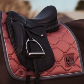 Elegant saddle pad with modern quilting in coral pink with silver details. Decorated with the Equestrian Stockholm badge in silver. The bamboo material is perfect all year round due to its thermal regulating effect - cooling in the summer and warming in the winter. It is also quick dry, moisture wicking, and anti-bacterial. Style with other pieces from the Coral collection for a head-to-toe stylish look.