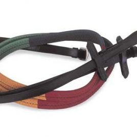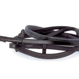The rein is available in black and brown. Both colours are available in size pony, cob, full and extra full.